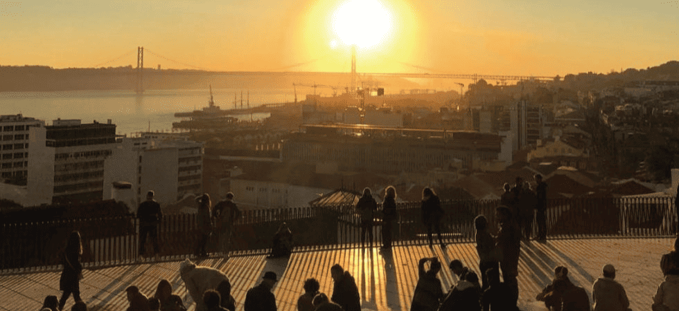 O que melhor do que parar numa esplanada para uma bebida fresca num dia de calor? Especialmente se essa esplanada tiver uma vista magnífica sobre o Rio Tejo! É exatamente isso que encontras no Miradouro do Adamastor, perto do Bairro Alto. Nas tardes de verão é normal juntarem-se aqui grupos de jovens que aproveitam para socializar à medida que o sol se vai pondo.