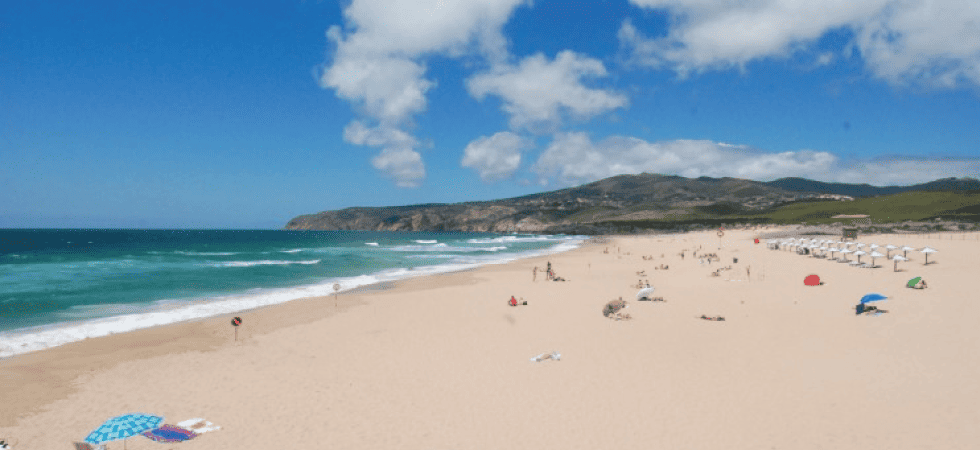 Integrada no Parque Natural de Sintra-Cascais, a Praia do Guincho possui um enquadramento paisagístico de grande beleza, em que as dunas de areia branca contrastam com os contrafortes da Serra de Sintra, que se avista ao fundo.